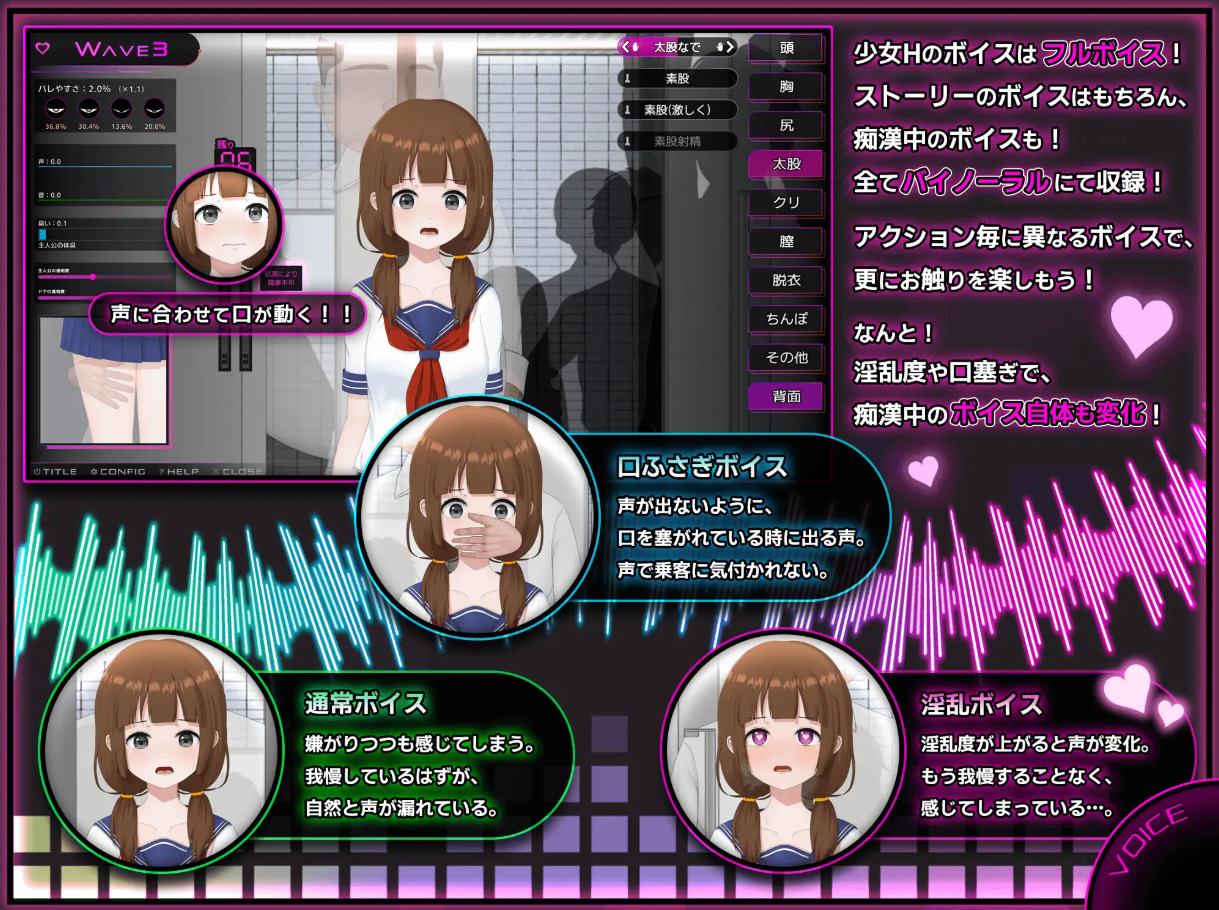 这作几乎就是咕噜咕噜痴漢電車的仿品,超慢热型游戏。前期和前作一样需要非常耐心的一步步解锁各种触摸方式和场景,中后期有了小玩具后就简单不少。这作对妹子的身心转变,各种表情身体反应变化作的也不错。源网站那边看了一下发售三天已经有10000+销量了,不愧是痴汉大国…